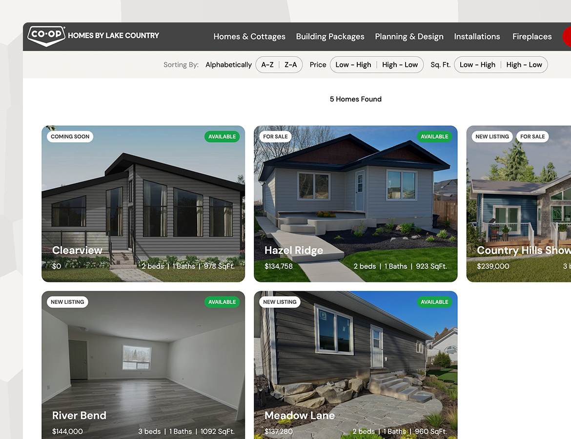 Lake Country Co-op, a member-owned cooperative in Saskatchewan, Canada, partnered with 306 Technologies to create a custom website for their Ready-to-Move Homes division. The previous website, built on WordPress, was bulky and disorganized, making it challenging to use. The Homes by Lake Country team needed a solution that was both user-friendly and a true reflection of the quality and pride they take in their homes. 306 Technologies created a sleek, easy-to-use website, that fosters team collaboration and is equipped with AI tools for maximum efficiency